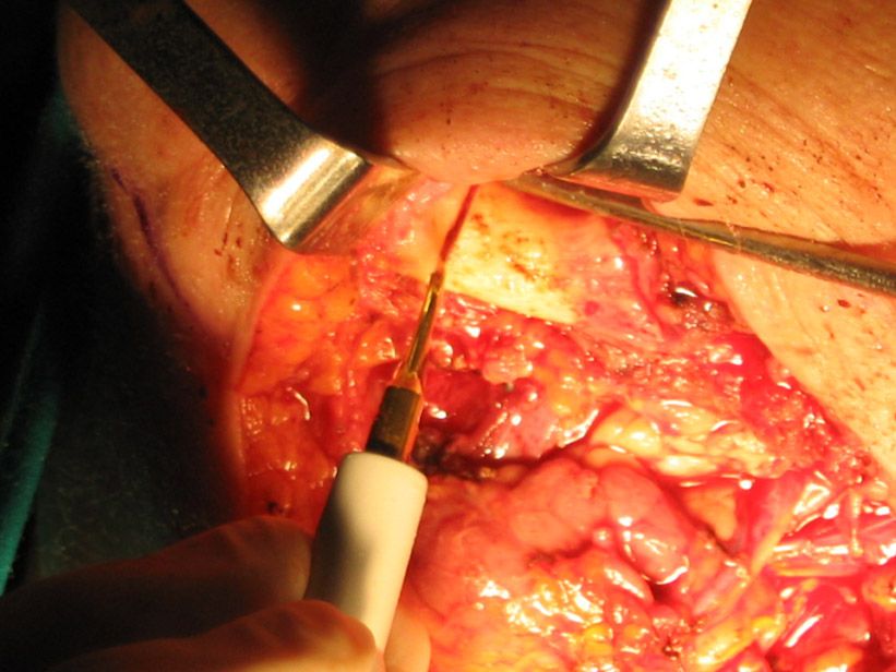- La costante irrigazione con soluzione fisiologica durante il taglio, mantiene il campo operatorio pulito ed evita gli eccessi di temperatura.