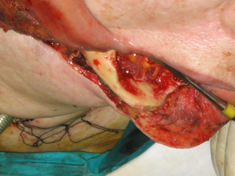 Una mandibulectomia marginale è stata effettuata con tecnica piezoelettrica.