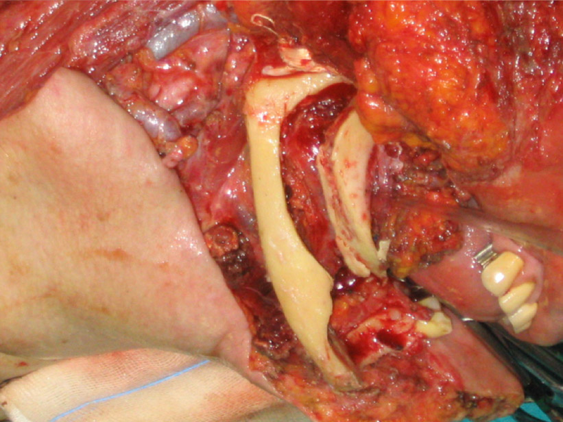 Donna di 76 anni portatrice di un carcinoma squamoso del trigono retromolare infiltrante l’osso mandibolare T4N0.